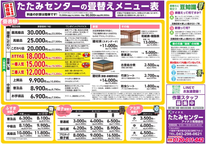 令和8年度 たたみセンター ”メニュー表” チラシができました!!